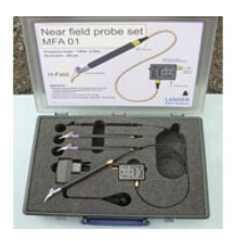 Langer公司最新推出的新一代手持式有源近場探頭(MFA 01),頻率范圍覆蓋1MHz到6GHz,分辨率可達200µm,用于PCB布線、元器件和IC引腳的細致的磁場測量,能對集成電路引腳或SMD器件進行選擇性的測量,使用MFA-R 0.2-6探頭能診斷高頻磁場問題,使用MFA-K 0.1-12探頭能確定高頻電流。